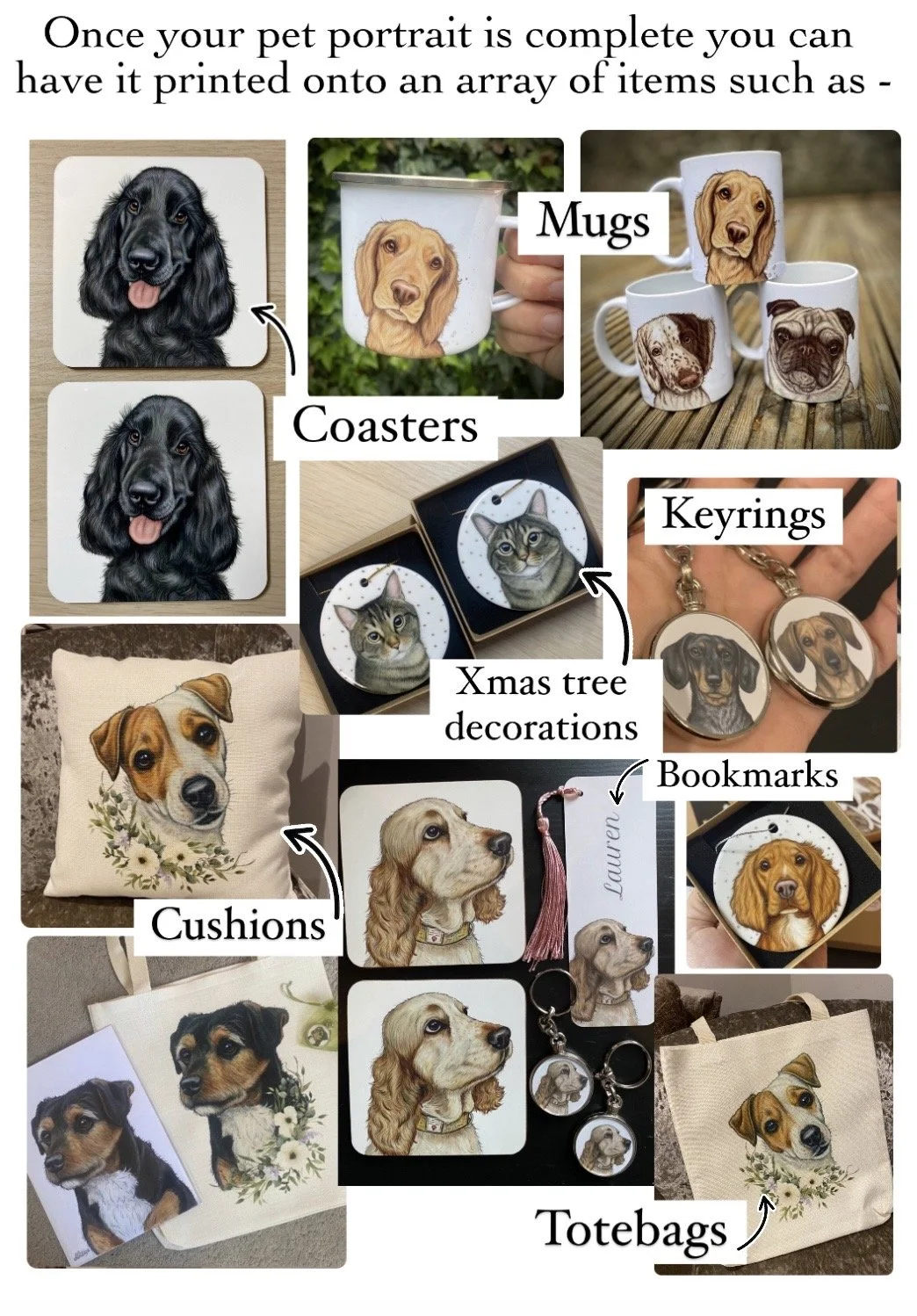 All portraits are created using your photographs, these can be altered using a few photos if you don’t have one that’s perfect as it is. multiple pets can be added from separate photos.